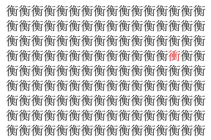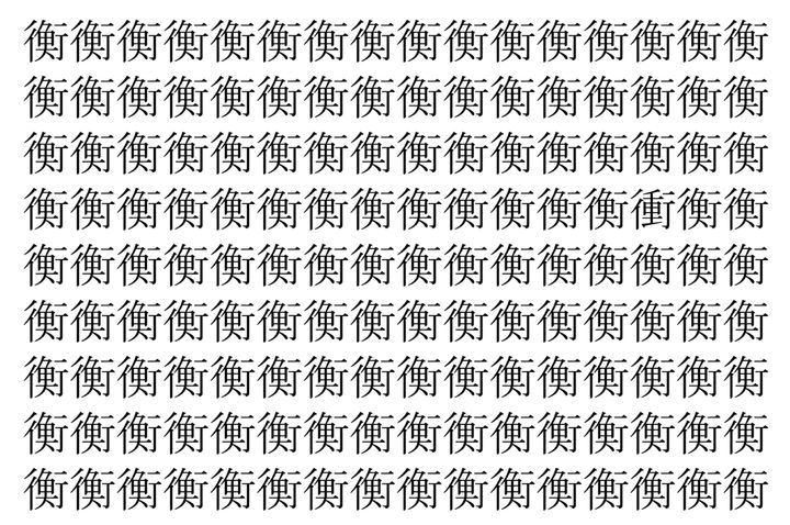 【脳トレ】「衡」の中に紛れて1つ違う文字がある!?あなたは何秒で探し出せるかな??【違う文字を探せ!】