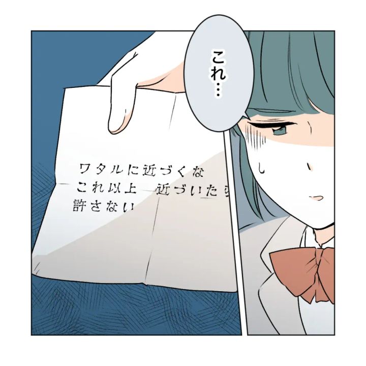 すると、「これ」と言ってシズクが差し出した紙には『ワタルに近づくな。これ以上近づいたら許さない』と書かれていました。
