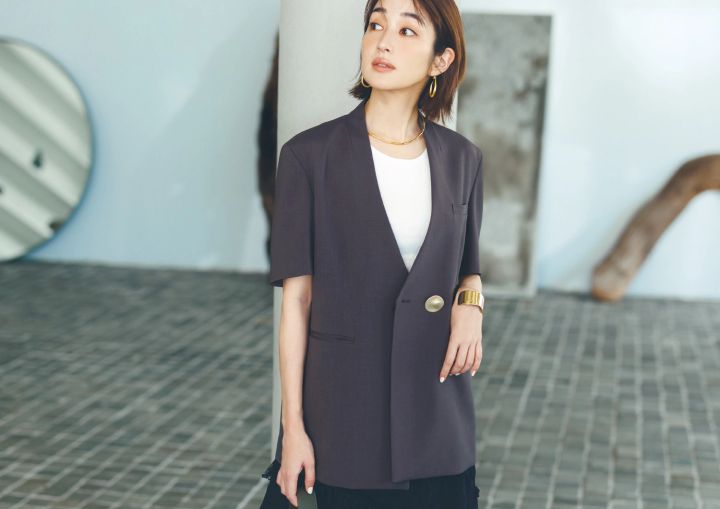 ボクシーなフォルムやメタルボタン・・・etc.どこかエッジィなジャケットは、しゃれシンプルに欠かせないアイテム。質感で控えめに盛った美人見えスカートを合わせるだけでムードが漂う。