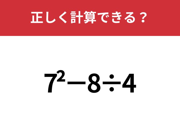 解けない人がほとんど!?「7^2−8÷4」正しく計算できる?
