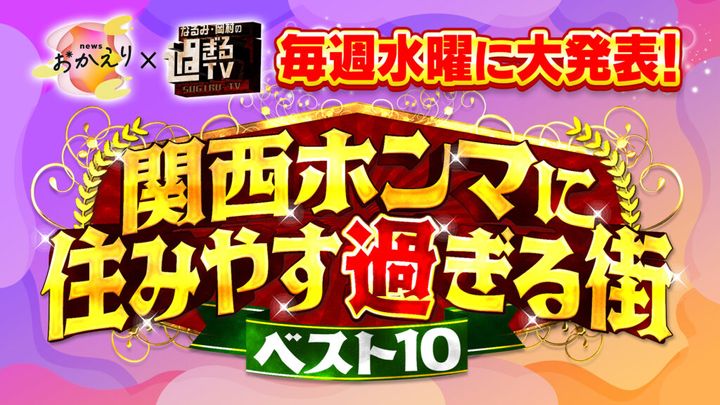 「関西ホンマに住みやす過ぎる街」ランキング1位を予想し、見事的中させると、抽選で6名様に現金5万円があたるプレゼントキャンペーンを実施! 応募方法等の詳細は、9月24日(水)の「newsおかえり」内にて発表される。その後「過ぎるTV」番組ホームページでもお知らせされるので、ぜひチェックを!