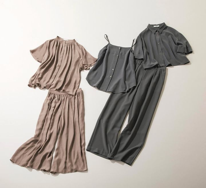 グレーシャツブラウス&キャミソールセットで¥31,900パンツ¥29,700(ともにコムサ/ファイブフォックス カスタマーサービス)