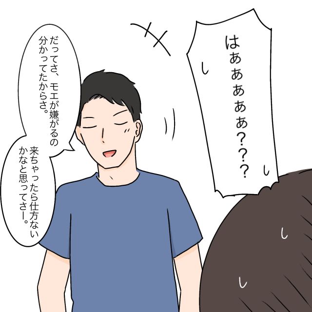 ひと言も相談なく、もう飛行機が到着するなんてひどいですよね。しかもモエさんが嫌がると分かっているからと言う理由で、呼んでしまえば了承せざるを得ないと思われているところが腹立たしいです。