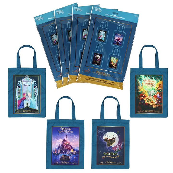 ファンタジースプリングスにある、4つのアトラクションの異なるアートが楽しめるミニトートバッグのセットです。
