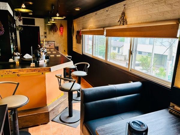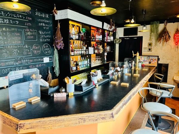店内はエスニック雑貨やドライフラワー、おしゃれなランプに彩られた素敵な雰囲気。店主の弟さんが夜にBARをされているお店である為、たくさんのお酒が並んでいます。