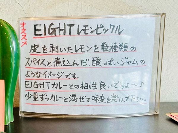 営業日は、週末に次の週の営業日をSNSで告知するスタイル。カレーやトッピングのお取り置き等の連絡も、インスタのDMでのみ可能。(当日でも可。しかし当日は見られないこともあるとのこと。)また、毎月8日は「エイトの日」で、トッピングが無料になるうれしいサービスも。