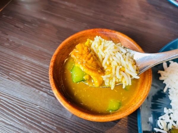 日本米より粘りが少なく、サラサラとした食感のこのお米だからこそ、カレーの中に埋もれず邪魔もせず、美味しさを引き立て合う関係になれるのかもしれません。