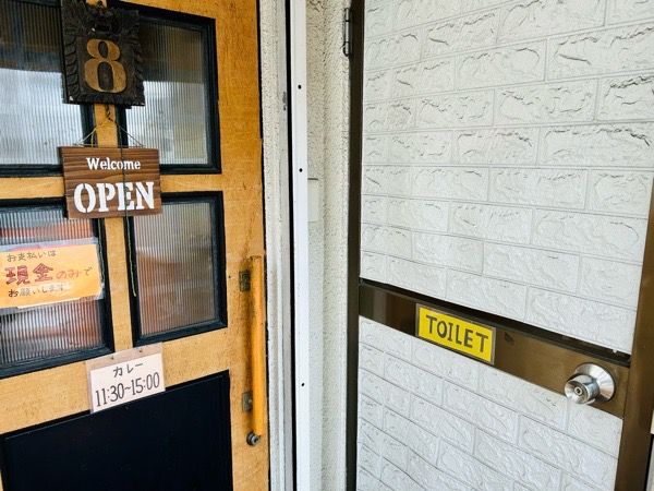 この日は特に入客が多かった日のようで、30分程並び、店主さんの明るい笑顔に出迎えられ店内へ。ちなみに、この入口の隣がお手洗いとなっています。