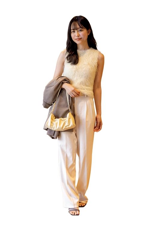 「旬のファートップスはザラで購入。今どきのデザインが豊富なので、女子会用の服に迷ったときはザラで買うことが多いです。まだまだ暑いけど、チェック柄ジャケットをアクセントに、季節感を取り入れてみました」(商社勤務/吉野華さん・26歳)