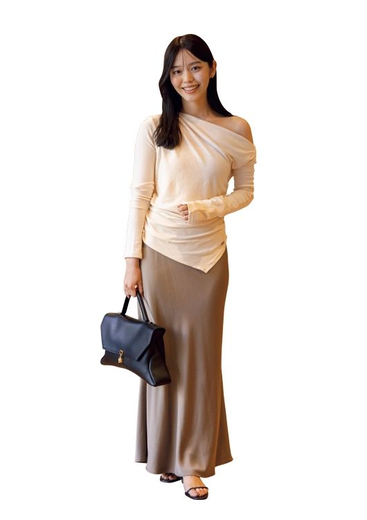 「女子会では必ず写真を撮るので、上半身が主役になるようにコーデを組んでます。トップスはpoláuraのもの。アシンメトリーデザインでちょっとモードに肌見せするのが、女子会ファッションのポイントかなと思ってます」(広告会社勤務/佐野柚衣さん・25歳)