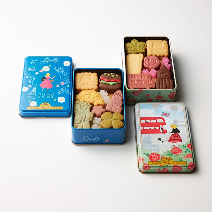 各国それぞれのシンボルをモチーフにしたクッキー缶