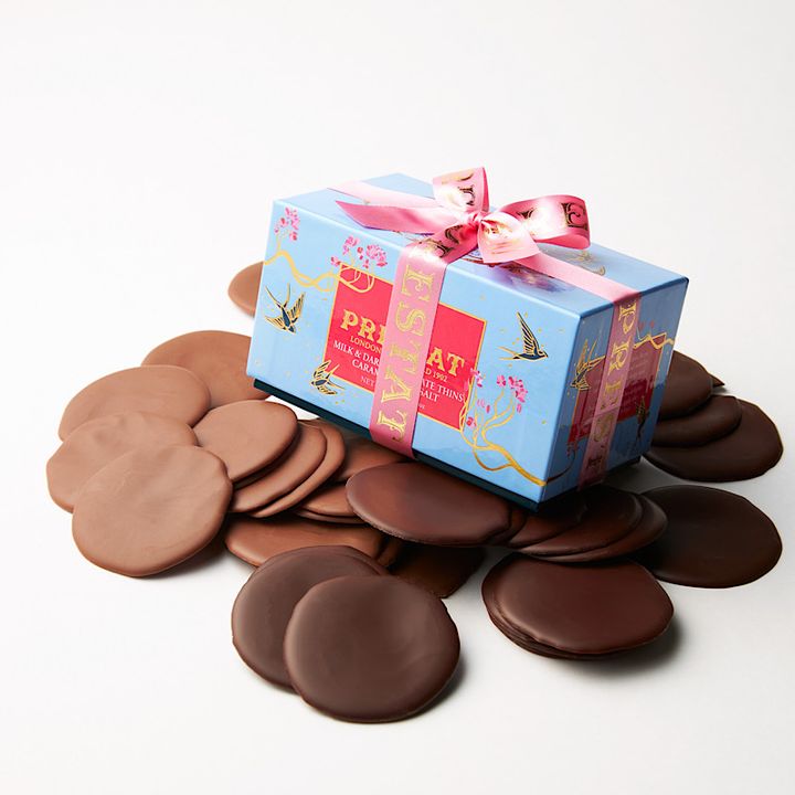 「王室にも高く評価されているイギリス生まれのショコラトリーで、映画「チャーリーとチョコレート工場」の原作者が参考にした店ともいわれる『プレスタ』。海塩をアクセントにした、薄型チョコレート「ウェイファー シーソルトキャラメル」は、ミルクとダークの2種入り。コク深いチョコレートの味わいが口いっぱいに広がります。以前友人からいただいたことがあり、あまりにも可愛くてすぐに手土産リストへ追加しました」(桶谷さん)