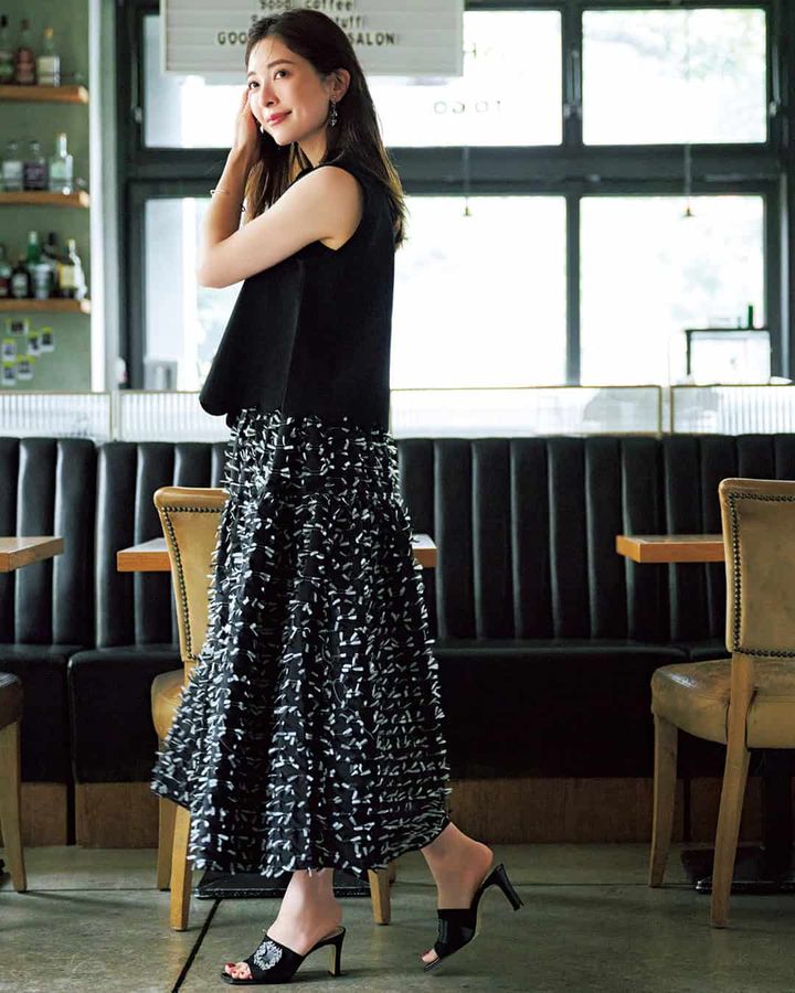 ドラマティックなティアードスカートで、大人フェミニン