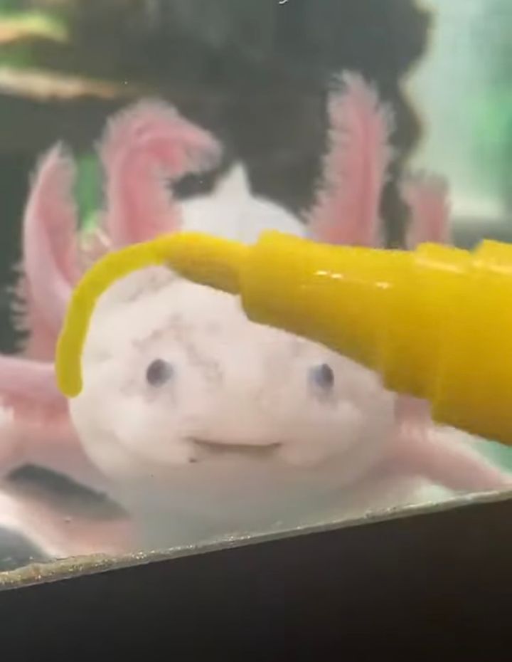 これは可愛い!じっと見つめてくるウーパールーパー!水槽越しにメイクを施したら愛らしいキャラが爆誕しました!!【アメリカ・動画】