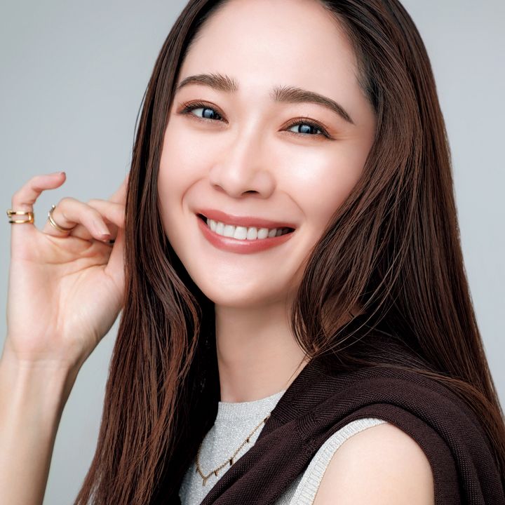 ブラウンシャドウが主役のメイクは、クリームファンデーションで端整な肌に整えておくと品よく仕上がる。ハイライトチークでみずみずしさを。リップはブラウンと好相性の艶やかなコーラル。