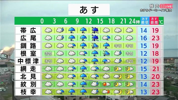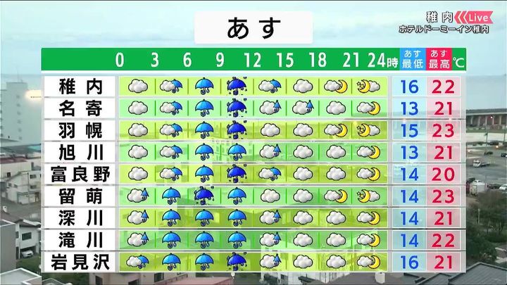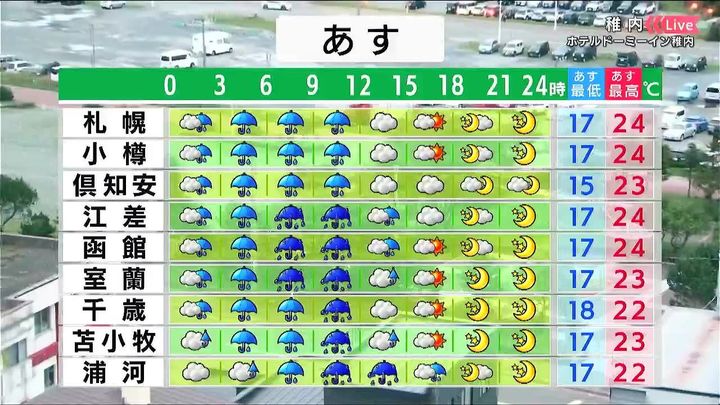 ・あすの札幌の朝昼晩の天気