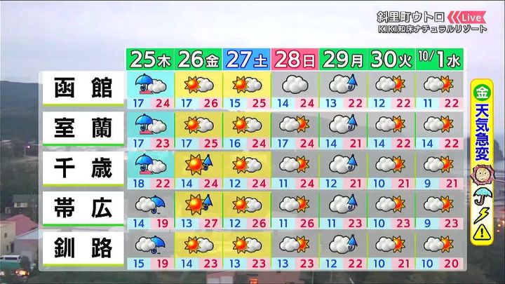北海道のあす25日(木)の天気と、週間予報を、HBCウェザーセンターの児玉晃(こだま・あきら)気象予報士がお伝えします。