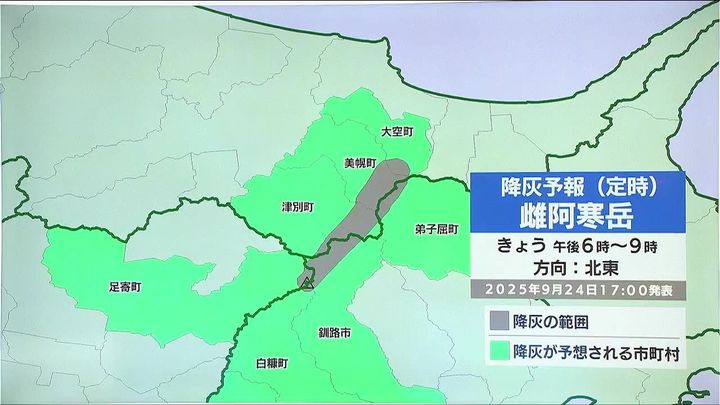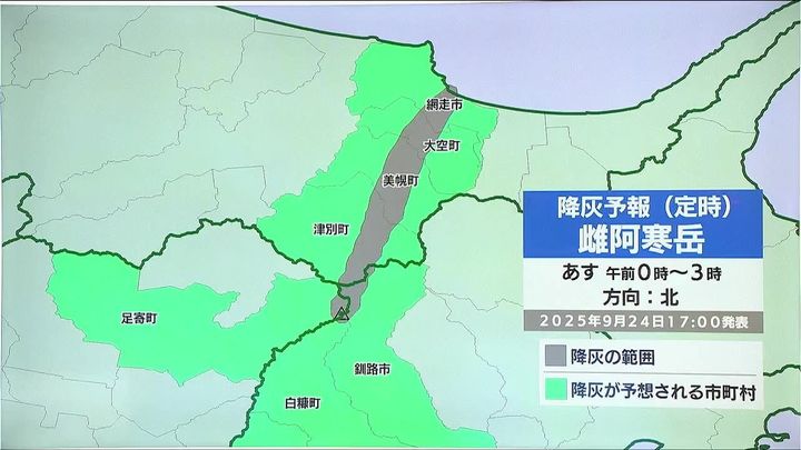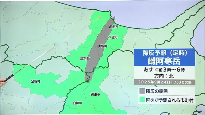 雌阿寒岳の降灰予報