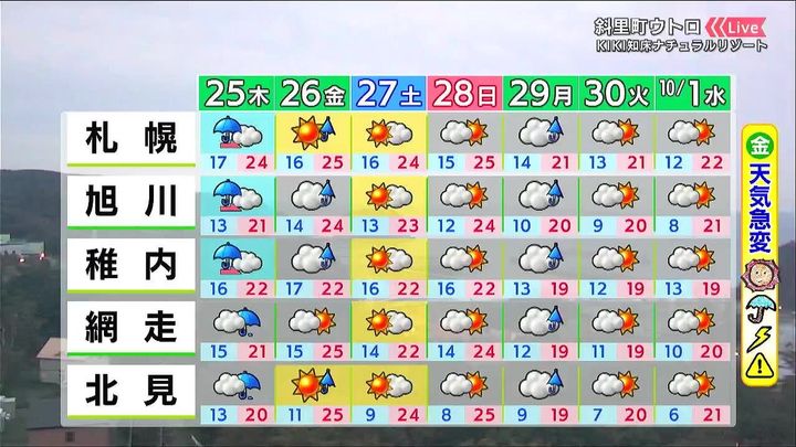 25日(木)の札幌の朝昼晩の天気