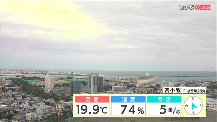 背景は24日午後5時ごろの苫小牧情報カメラ