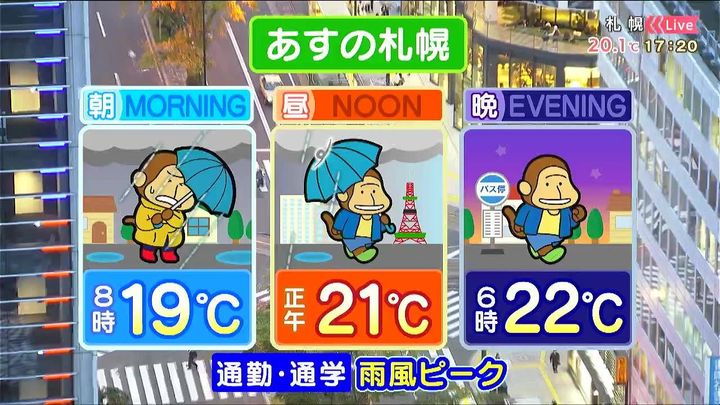 あす25日(木)の札幌です!朝昼晩の天気をもんすけでお伝えします!