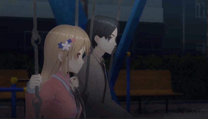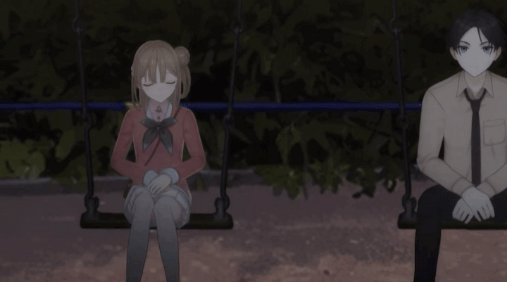 『傷心タイムリープ』10話ラストで、クラスメイトの和瀬(CV;坂田将吾)に想いを告げた若菜(CV:高柳知葉)。「少し、歩くか」と言う和瀬とともに夜の公園へ。