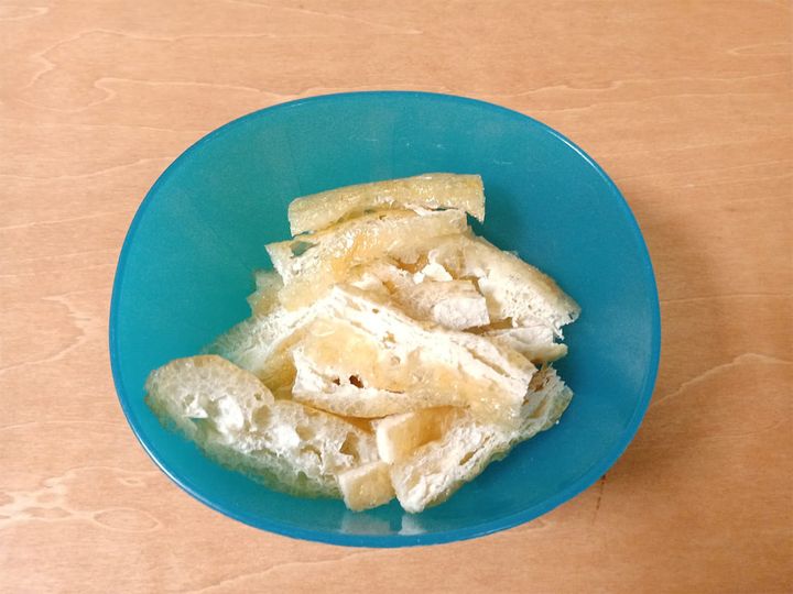 2. 油揚げは5mm幅程度に切る。