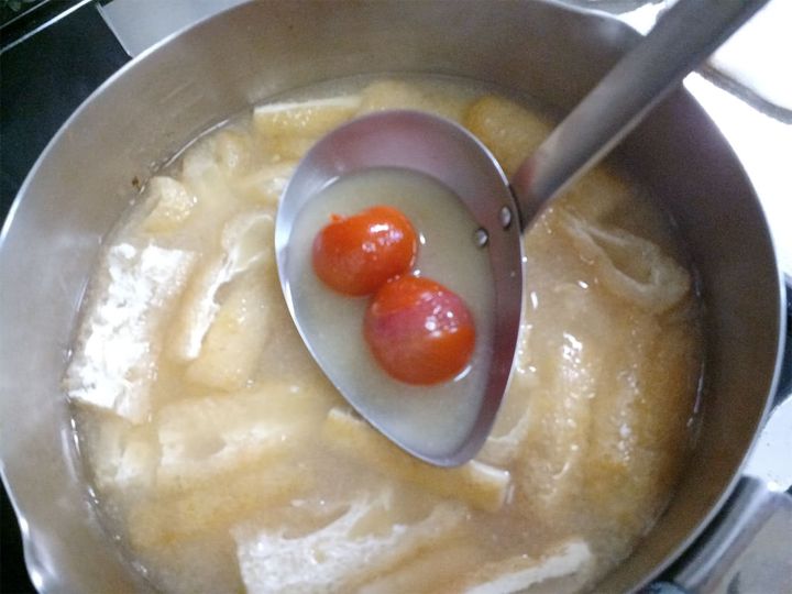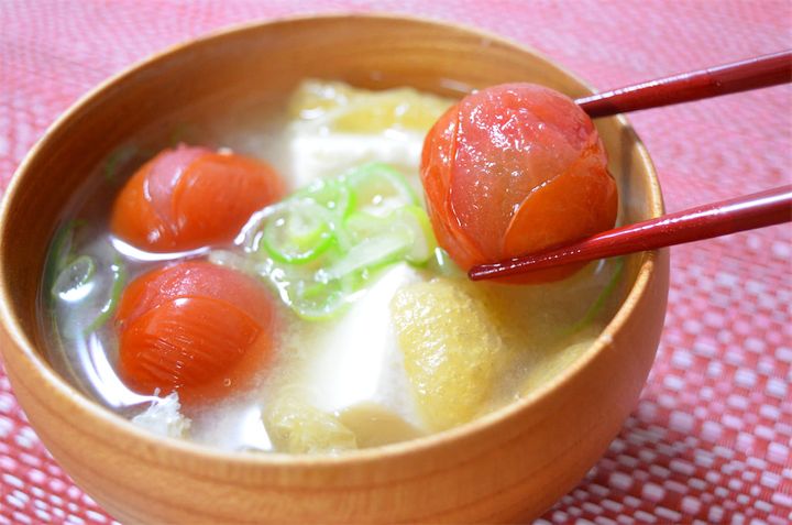 3. プチっとはじけてフルーティーな「トマトのみそ汁」作ってみた!かつおダシ×トマトで旨味マシマシ♡【農家直伝】