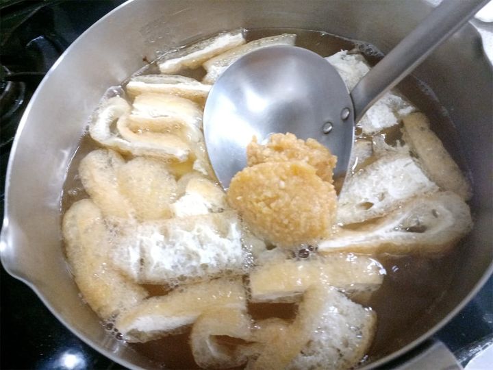 4. 3に油揚げ、豆腐を入れ煮立たせる。
