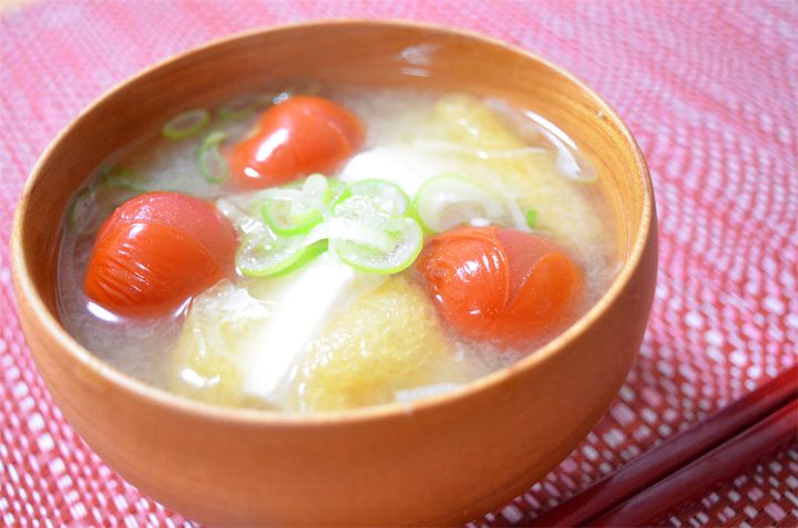 ミニトマトが弾けて旨味爆発♡「トマトのみそ汁」