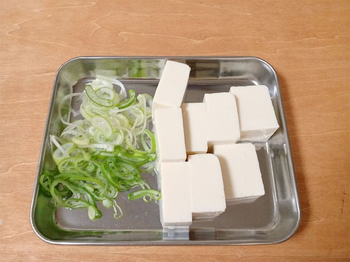 1. 長ねぎは小口切りにし、豆腐は好みの大きさに切る。