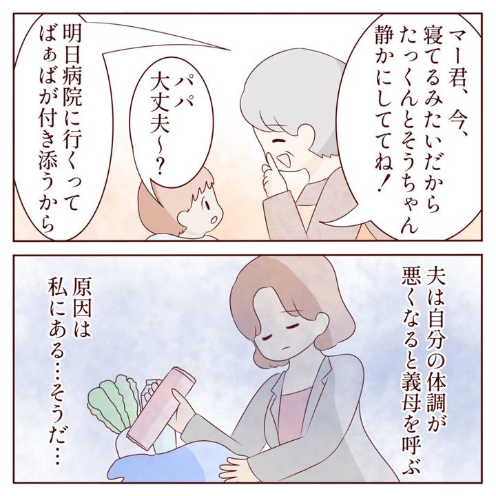 夫は自分の体調が悪くなると、いつも義母を呼ぶのです。そしてその原因は私にあるのだそうです。