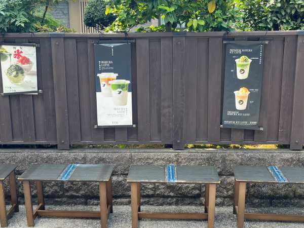 お店に隣接してベンチがあるので、非日常感あふれるレトロな菓子屋横丁の町並みを眺めながらいただくのもおすすめです。