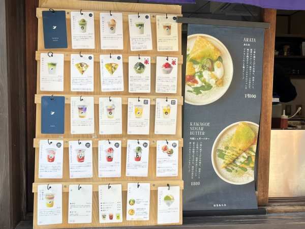 和の趣を感じながら、SNSに映えるスイーツやドリンクが揃う「抹茶あらた」。川越食べ歩きを楽しむなら、リストに加えておきたい注目スポットです。