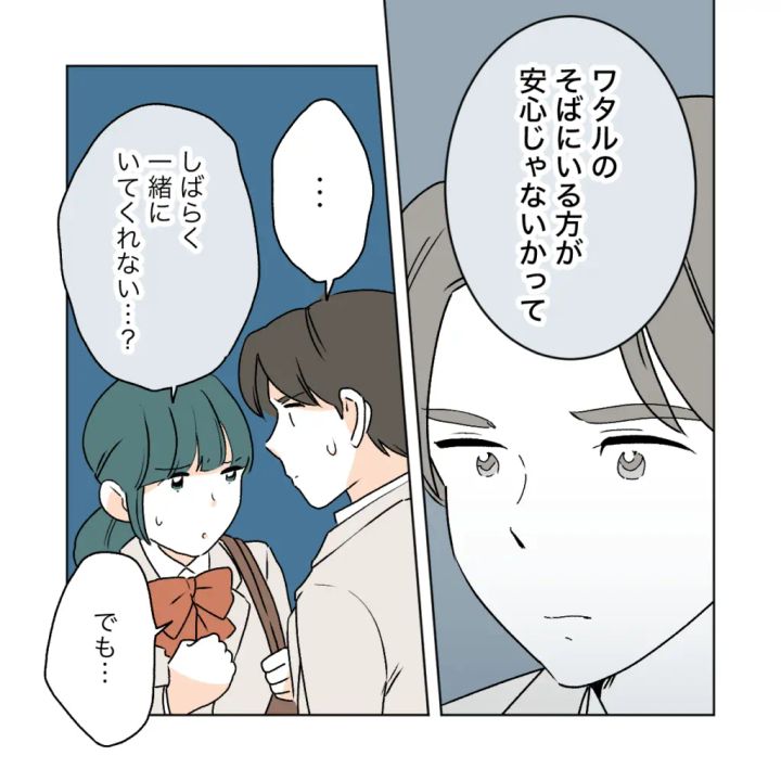 「カエデが」ワタルのそばにいる方が安心といったとワタルに伝えたのです。思わず無言になってしまったワタル。カエデに手紙が来たことで、自分とカエデは離れているはずなのです。「しばらく一緒にいてくれない?」と深刻そうな顔でワタルにお願いするシズクに、「でも」とワタルが言いかけると