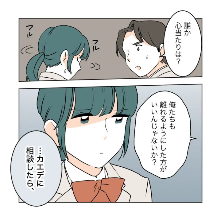 最近一緒にいることが多くなったからかな、と言われたワタルは、自分たちも離れるようにした方がいいのではないかと言います。ところがシズクは「カエデに相談した」と前置きして