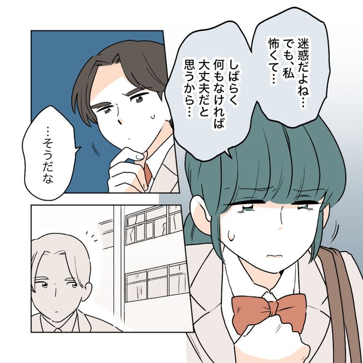 「迷惑だよね・・・でも私、怖くて。しばらく何もなければ大丈夫だと思うから」と泣きそうな顔でお願いするシズクに「そうだな」とワタルは答えました。校庭でシズクと話しているワタルは、その時校舎の窓で誰かがこちらを見ている気配を感じました。