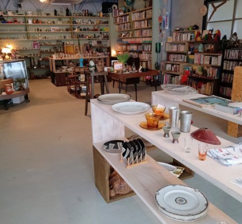 奥行きがある店内に国際色豊かな雑貨がズラリと並んでいます。ここだけ見ると雑貨店ですよね…レトロな物ばかりです。