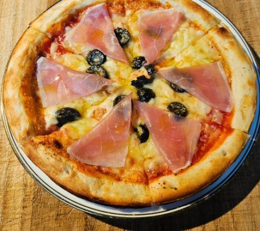 写真のピザは生ハムとオリーブのピザだそう。テイクアウトも出来ますから散策しながら食べ歩きが出来なくもないですね⁈ ※ゴミは持ち帰りましょう。