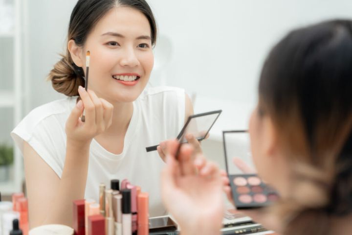 パールを広範囲に使うとシワが目立ちやすくなるため、パールは部分遣いに留めて、全体はマット系で仕上げるほうが若々しい印象になります。