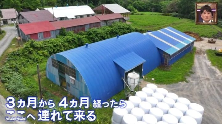子牛は3~4ヵ月でドーム型の大きな「3号牛舎」に移動し、10ヵ月で出荷され、1頭45万円ほどで取引される。