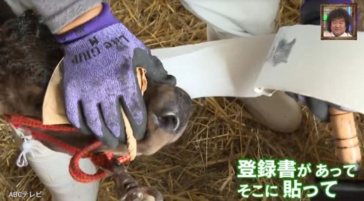 この日は、農協職員が生まれたばかりの子牛の個体登録にやって来た。人間の指紋のように一頭一頭異なるという鼻紋(びもん)を採取する様子も撮影できた。