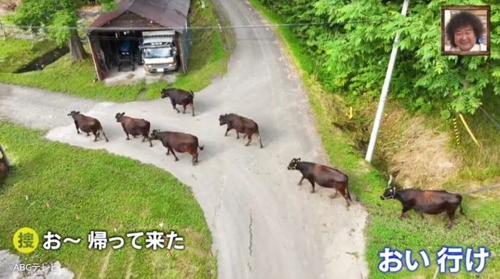 男性の牧場は牧草地含めて約15ヘクタール。東京ドーム約3個分の広さだ。妊娠中の牛たちは昼間、向かい側の放牧地へでかけ草を食み、夕方に男性が声をかけるとトコトコと道路を渡って帰ってくる。