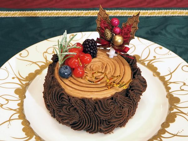 「ブッシュ・ド・ノエル」は、ビターなチョコレートのほろ苦さが効いていて、甘さとのコントラストが絶妙。切り株をイメージした見た目も、クリスマス気分を盛り上げてくれます。