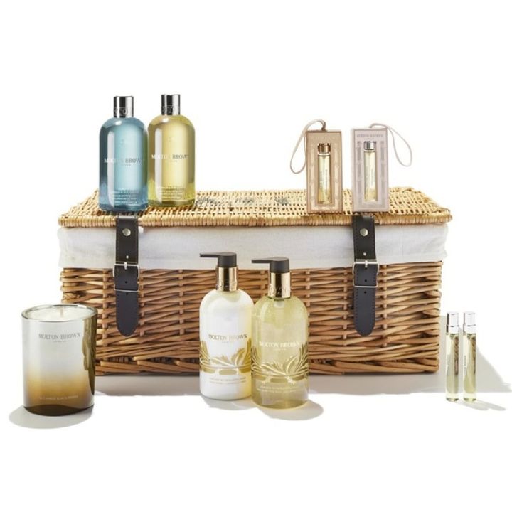 モルトンブラウンならではのアイテムを詰め込んだギフトバスケット。ブランドのアイコンフレグランスのオードパルファンをはじめ、ホリデー限定の「フェスティブヴィンテージ エルダーフラワー」のハンドケアまで、厳選されたラインナップです。贅沢な時間を届けたい人へのギフトとしてぴったりです。