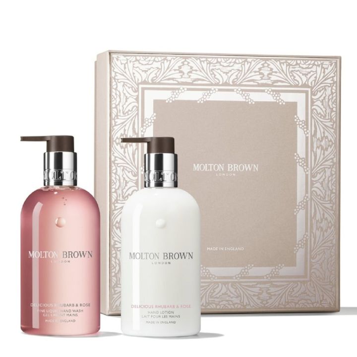 「デリシャス ルバーブ&ローズ」の香りのハンドケアセット。手肌が甘く爽やかな香りで包み込まれ、使うたびにうっとりするはず。