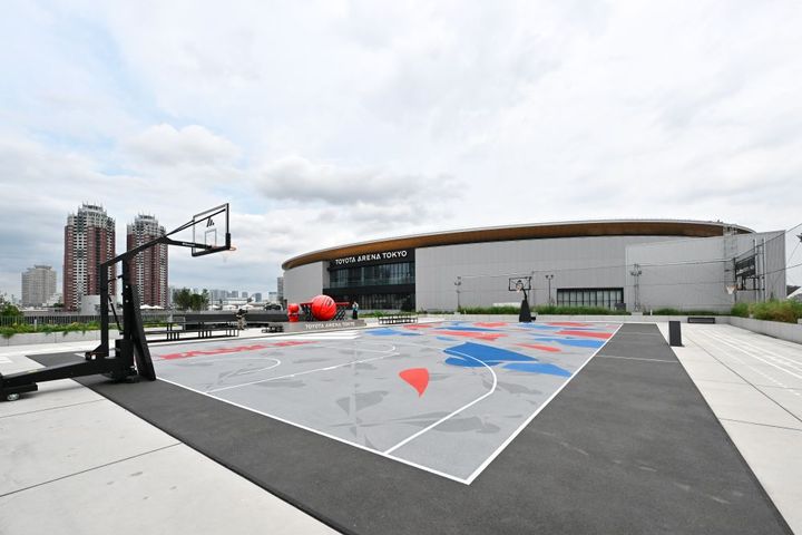 イベントのない日にも一般開放される屋外バスケットボールコート。