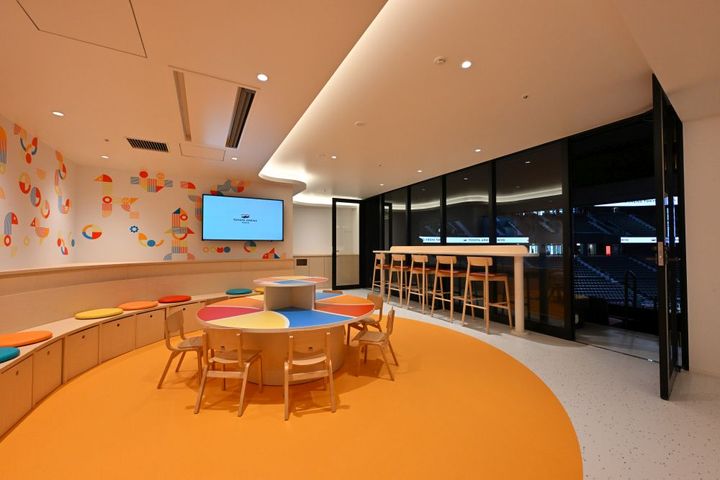 2時間に及ぶ試合では、どうしても子どもは途中で飽きてしまうもの。そんな時にぴったりなのがFAMILY ROOMです。観戦席はベンチシート仕様のため、子どもと一緒に座って楽しむことができます。また観戦席のすぐ後ろにはプレイルームを設置。アリーナ内から離れることなく、試合観戦に飽きてしまった子どもたちが遊ぶことができます。プレイルームは調光機能や遮音機能が整っており、音に敏感なお子さまでも安心です。