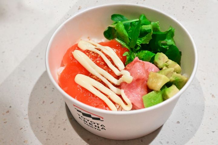 豊洲から仕入れたサーモンとねぎとろに、アボカドやザクザクチップを加えた丼もの。生の海鮮をアリーナで食べる経験はなかなかないですが、さすが青海という立地。新鮮な豊洲の魚とオリジナルソースの相性が抜群で、「海鮮丼を試合観戦をしながら食べられるの!?」と驚きました。