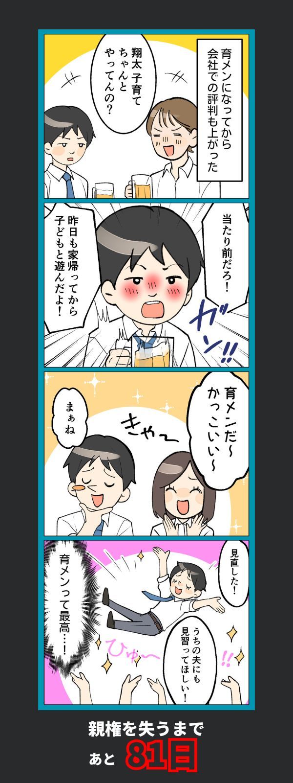 社内でチヤホヤされる“自称育メン”に妻の本音は…?【100日後に親権を失う育メン #19】